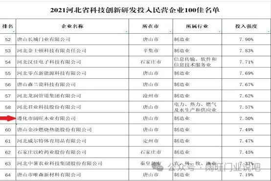 2021年入選河北省科科技創新研發投入民營企業100佳名單
